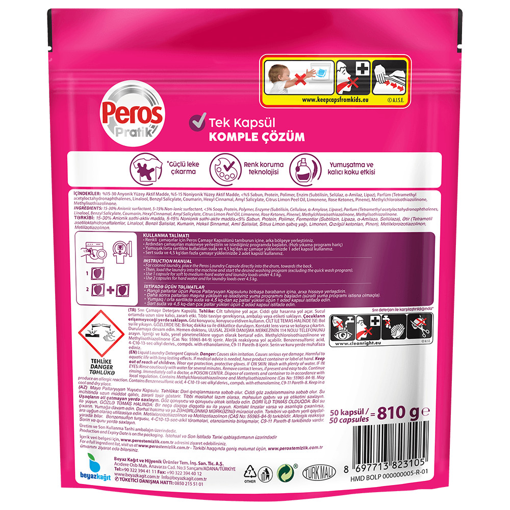 Suda hızla çözünen kapsül yapısı sayesinde deterjan kalıntısı bırakmaz, her yıkamada doğru dozda performans sağlar. Günlük kullanım için ideal olan Peros Pratik, çamaşır yıkamayı sizin yerinize düşünür.