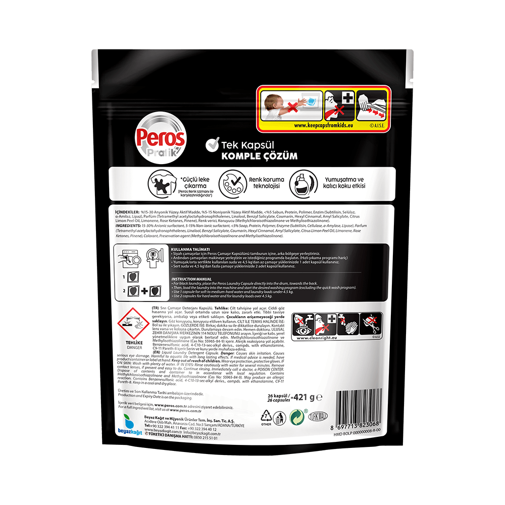 Peros Pratik macht das Wäschewaschen zu einem mühelosen und praktischen Erlebnis und bietet dank seiner innovativen Pod-Technologie effektive Reinigung in nur einem Schritt. Ohne Abmessen, Ausgießen oder Tragen vereint ein Pod starke Reinigungsleistung, Farbschutz, Weichspülung und langanhaltende Frische.